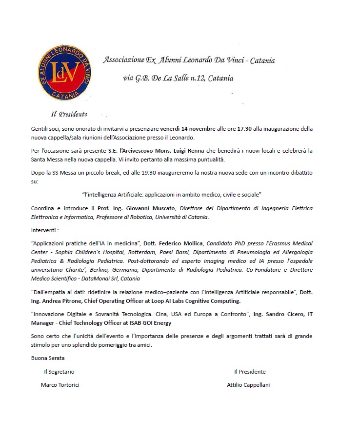 14 novembre 2025: Inaugurazione Cappella/Sala riunioni Associazione